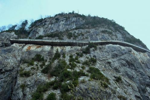 Cette portion de route vertigineuse n'est plus utilisée depuis le creusement du tunnel du Grand Rocher.