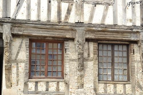 Dans le centre du bourg, nous pouvons admirer des maisons à pans de bois datant du XVème et XVIème siècle, certaines à encorbellement. La technique de l'encorbellement répond à différents usages, réduire l'empiètement sur le domaine public tout en augmentant la surface de plancher, protéger l'échoppe avec ses étals extérieurs. Pour une même façade de certaines maisons, les briques de remplissage sont montées ou à plat, ou en arrête de poisson, ou en croix. Les sablières sont sculptées (poutres horizontales). Ces maisons sont inscrites aux Monuments Historiques.