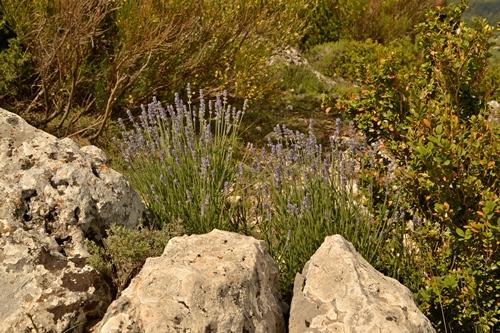 Des pieds de lavande pour nous rappeler les champs cultivés juste en face sur le plateau de Valensole. Thym, romarin complètent les senteurs pour entamer la descente.