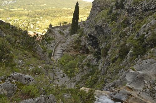 Le chemin de croix commence par une traversée du ravin de Notre-Dame par ce joli pont de pierre.